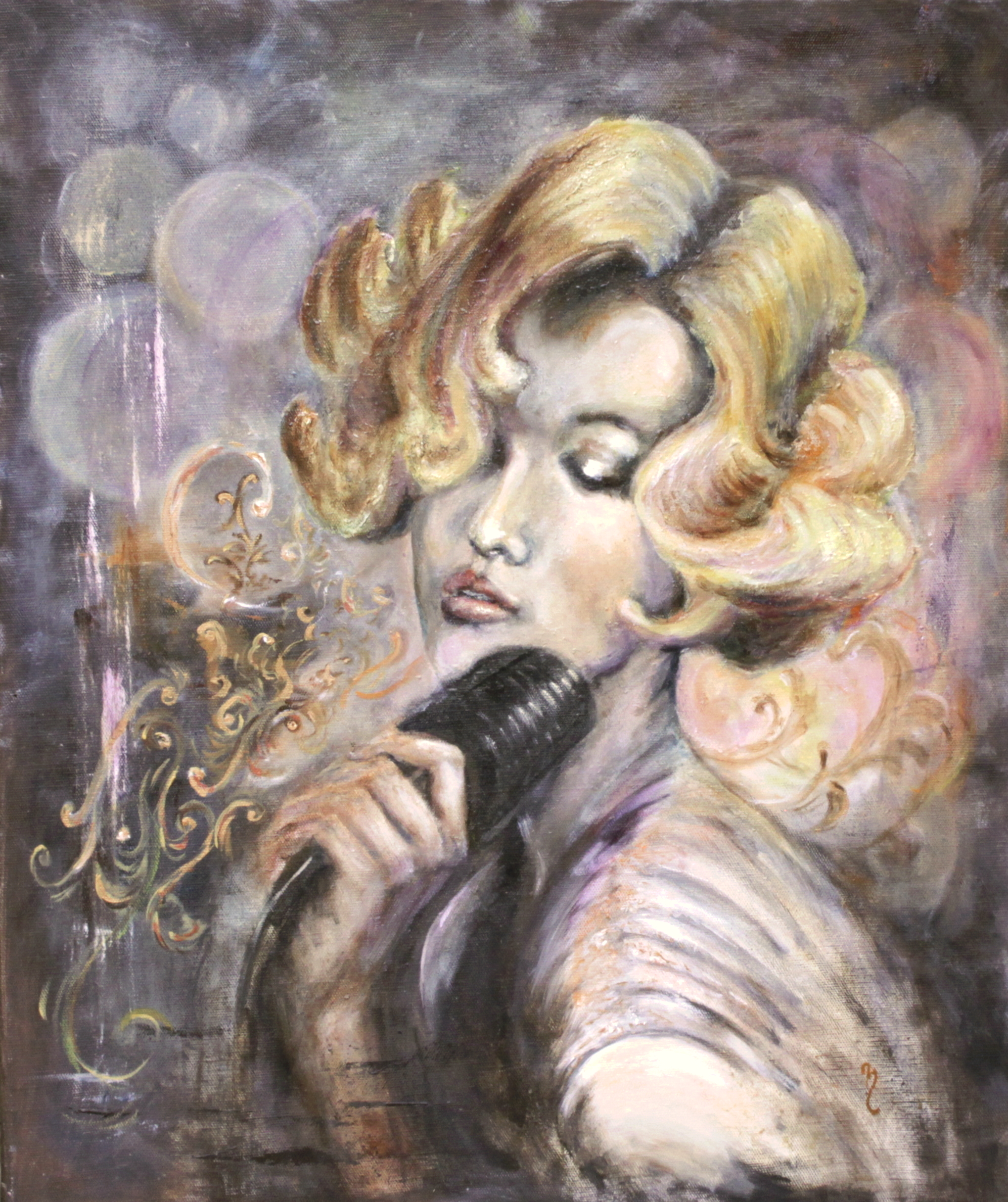 This painting captures the vivid golden mood and music passion of an unforgettable musical era.